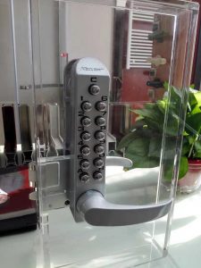 產(chǎn)品簡(jiǎn)介:KEYLEX機(jī)械密碼鎖為全機(jī)械式,不用電池和電源,也不用布線,安裝簡(jiǎn)單,可以用12個(gè)按鈕組合記憶密碼,任意設(shè)置,按鈕是特殊加工的不銹鋼按鈕,不會(huì)殘留下使用的痕跡。機(jī)械密碼鎖防盜,美觀,入戶門(mén)首選!